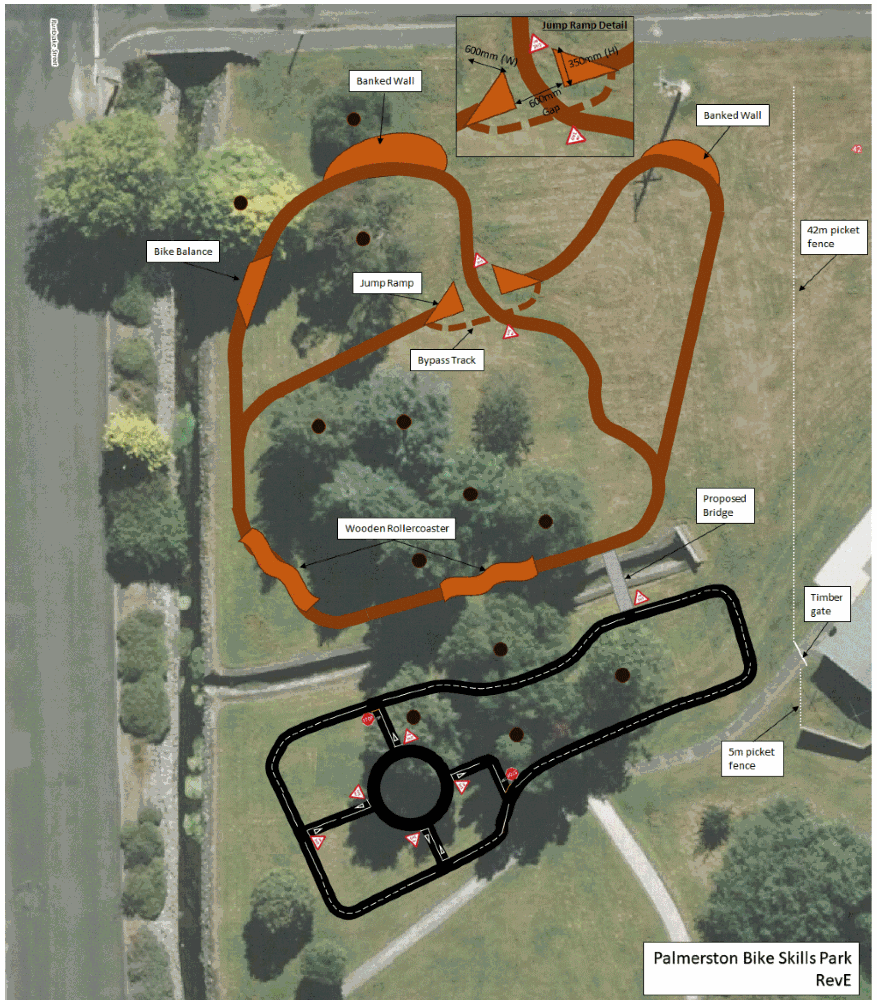 The sealed track will be similar to the Bike Park in Oamaru at Friendly Bay albeit on a smaller scale. Like the Friendly Bay bike park, it will be designed to teach children road safety.