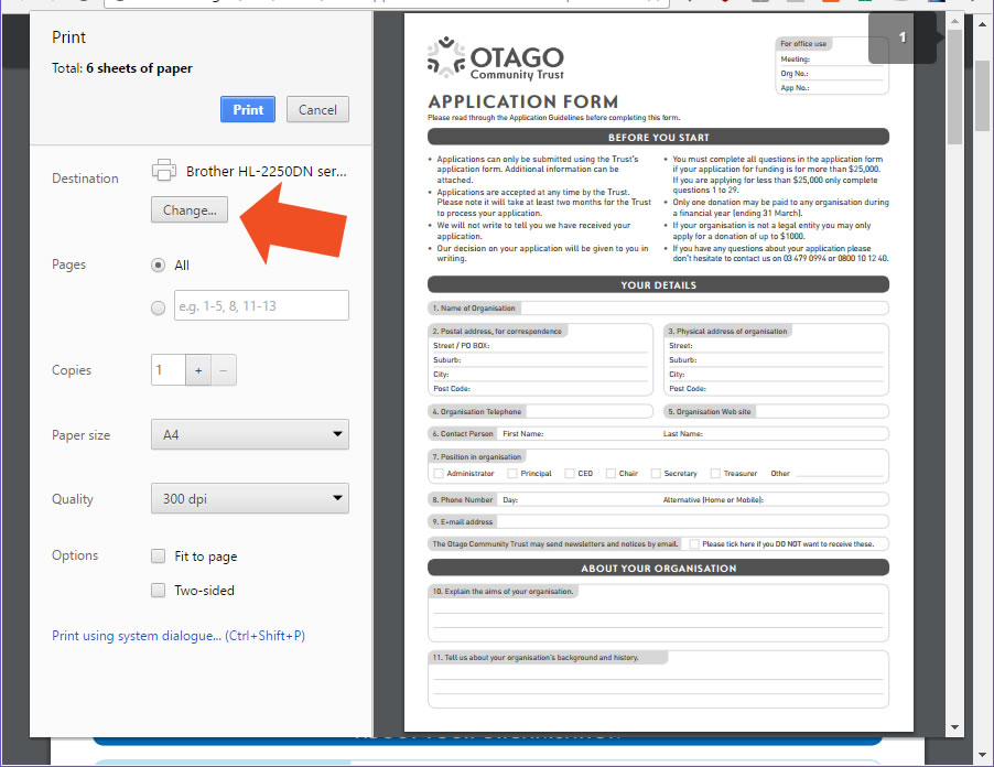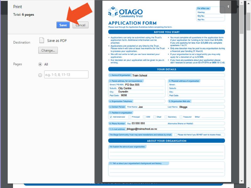 If you hit the “Save” button in the toolbar, it will just save the blank original PDF without the text you entered. To save the text, you need to again hit the Print option, choose ‘Save as PDF’ in the Destination and click Save to download the filled out form (see image below). Saving the PDF in this manner will not allow you to edit it in the future.