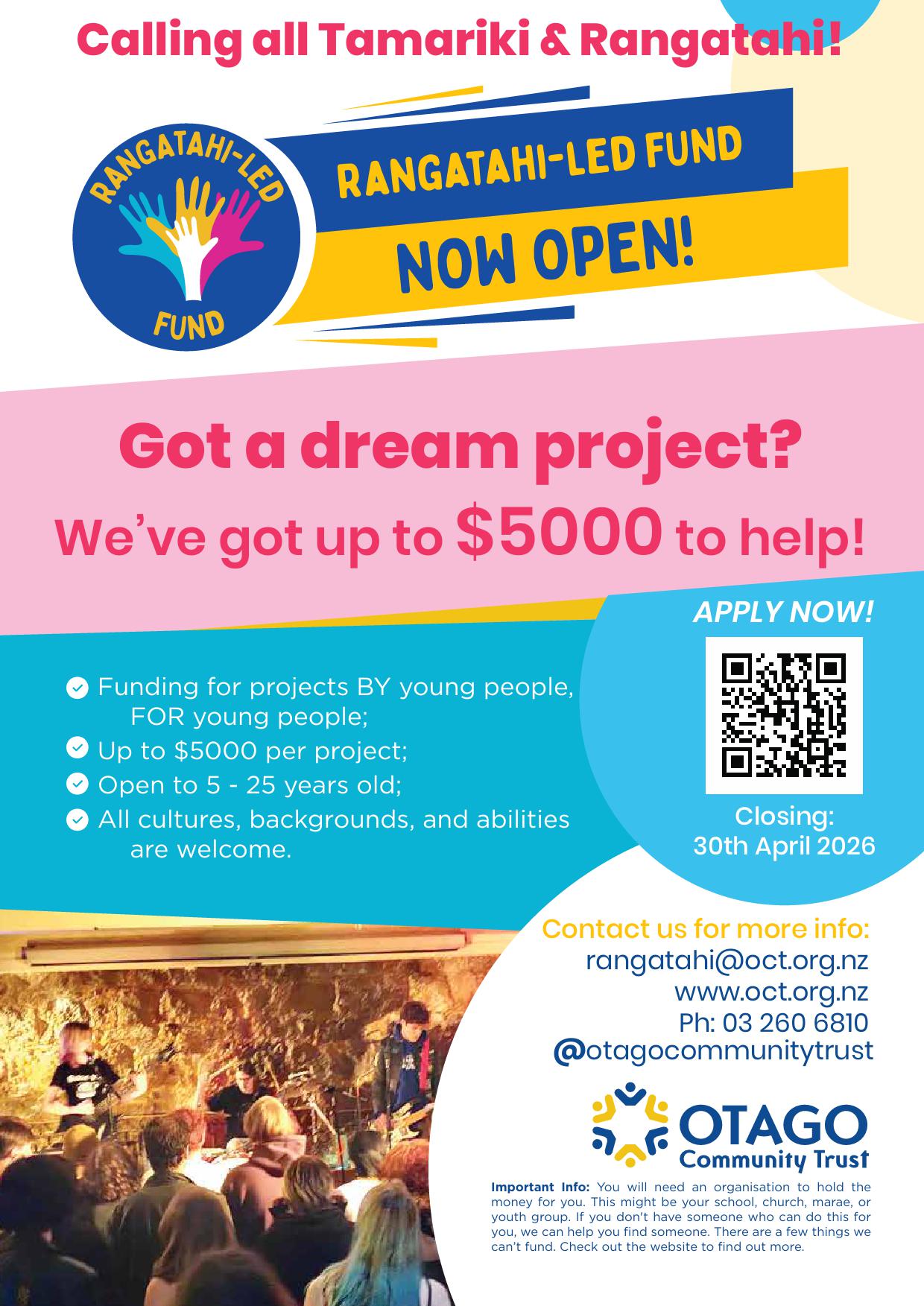 Rangtahi-Led Fund Poster Ōtepoti